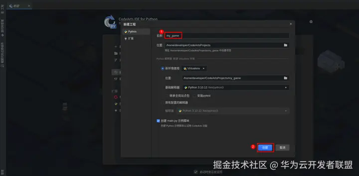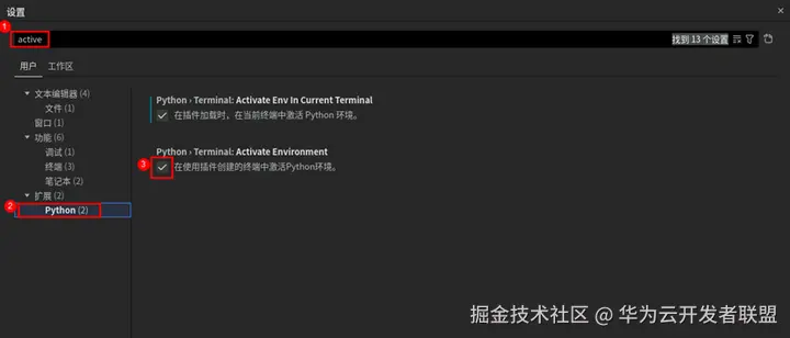 CodeArts IDE for Python配置自动激活虚拟环境(如果之前配置过可忽略此步骤)。