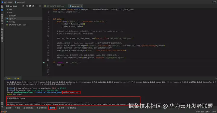 本案例中,需要调用DeepSeekV3大语言模型,需要安装Python大模型应用开发框架AutoGen。