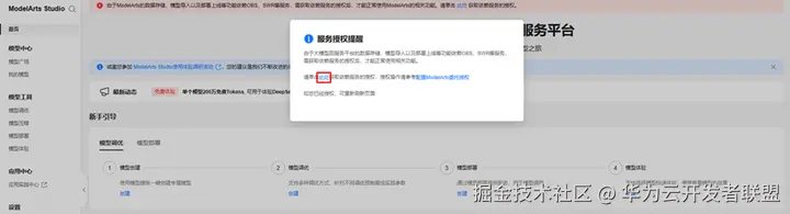 (可选)如果遇到“服务授权提醒”弹窗,参考下面两步进行操作,如果没有则忽略跳过。