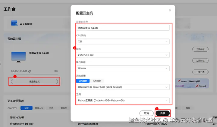 - 系统镜像:公共镜像 Ubuntu 22.04 server 64bit (xfce4 desktop)