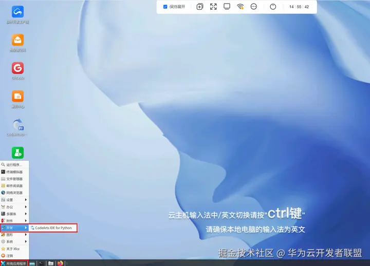 点击左下角的“所有应用程序”->“开发”->“CodeArts IDE for Python”,打开IDE。