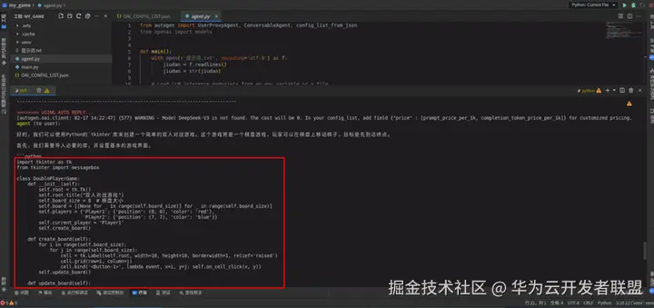 如果对返回代码的效果不满意,或者代码中存在问题,可以在“终端”中继续与DeepSeekV3对话,提出自己的要求(越具体越好)完善代码。