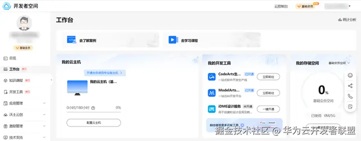 登录开发者空间,登录后页面如下: