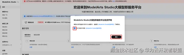 进入ModelArts Studio控制台首页。