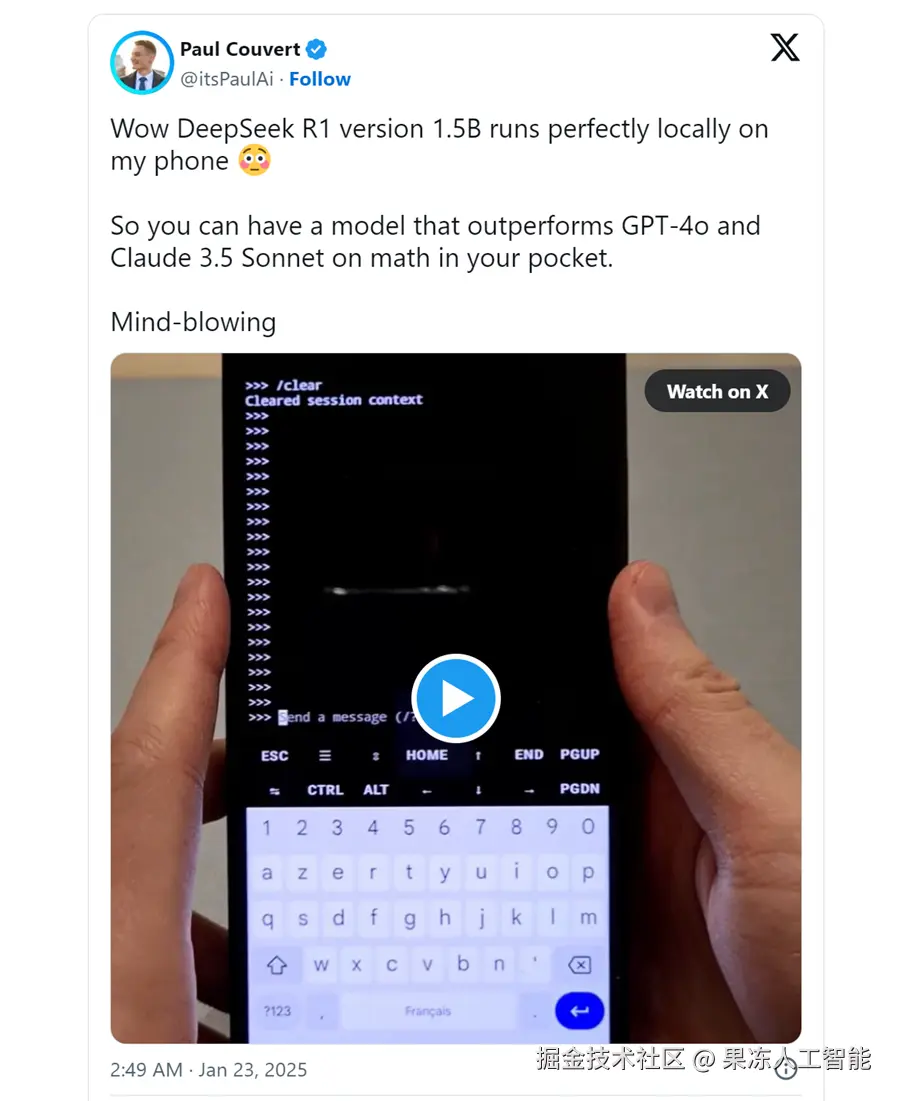 4 DeepSeek R1 1.5B 完全在手机上本地运行: