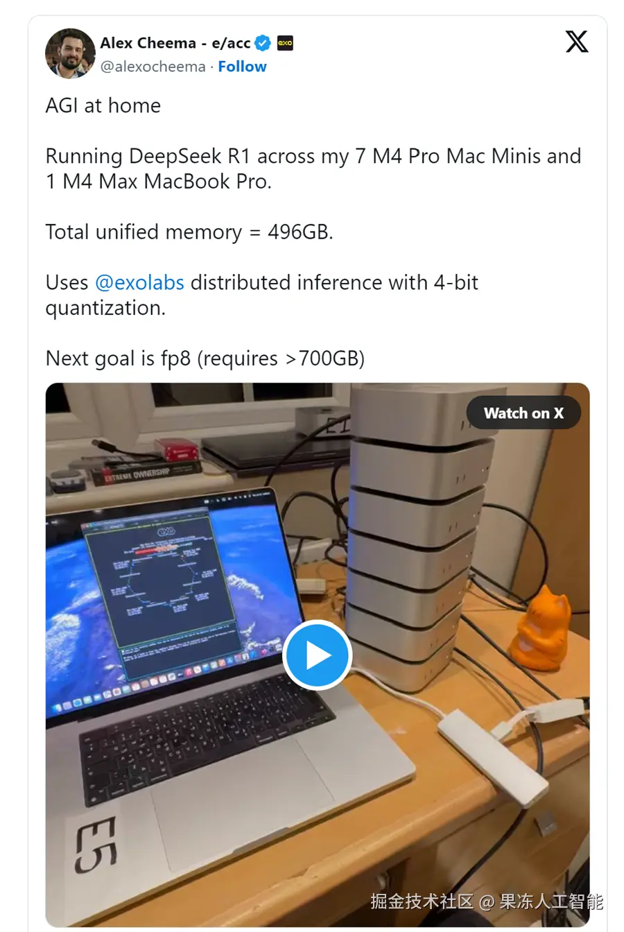 - 在我的 7 台 M4 Pro Mac Mini 和 1 台 M4 Max MacBook Pro 上运行 DeepSeek R1: