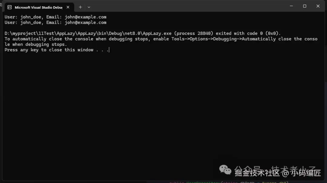 Console.WriteLine($"User: {user.Username}, Email: {user.Email}");