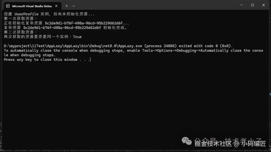 ($"两次获取的实例是否相同:{ReferenceEquals(resource1, resource2)}");