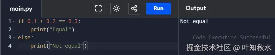 我本以为结果会是 0.3,但结果却让我震惊,我得到了一个错误的答案。