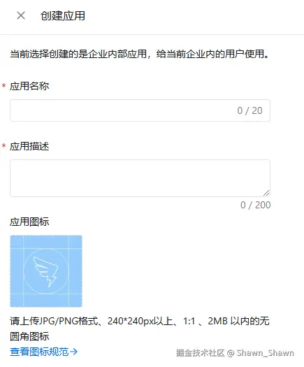 - 在弹出窗口里填好 应用名称、应用描述,上传应用图标点击保存。
