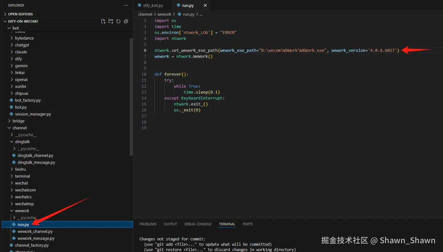 修改${DIFY_ON_WECHAT}/channel/wework/run.py文件