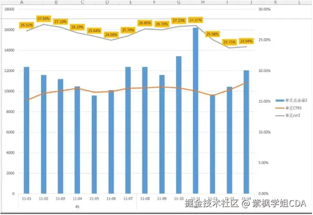 环比适合分析短期内具备连续性数据的业务场景。 举个栗子:比如说我们要做一个为期10天促销活动,在做这个活动的过程中,每天都会去观察活动的效果,根据前一天的活动效果来优化后面的活动过程,而这个活动之前没有做过,没法与以前的活动效果进行对比,这个时候就要看日环比数据了。