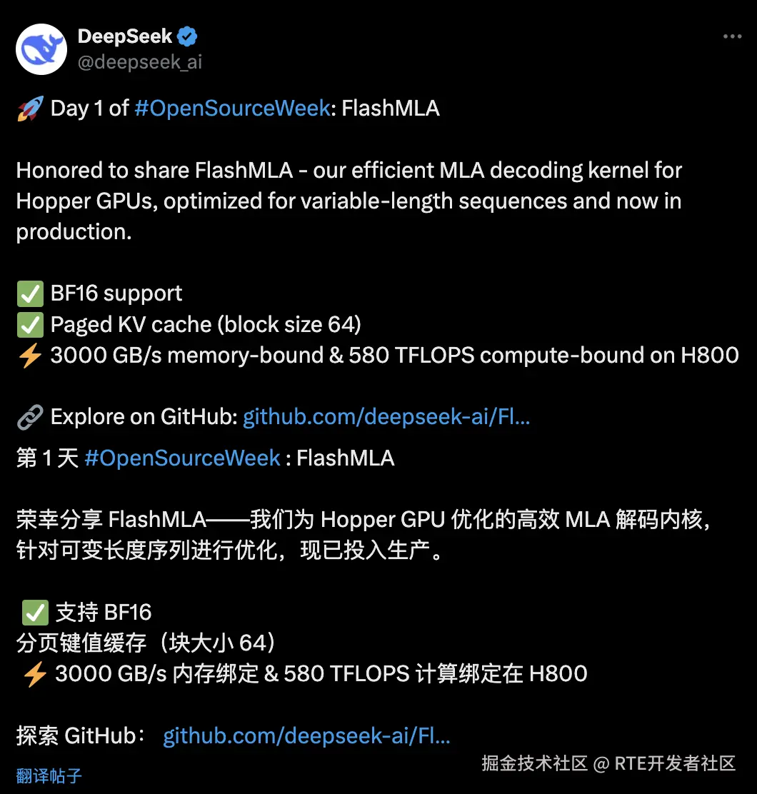 3、DeepSeek 发布开源项目 FlashMLA