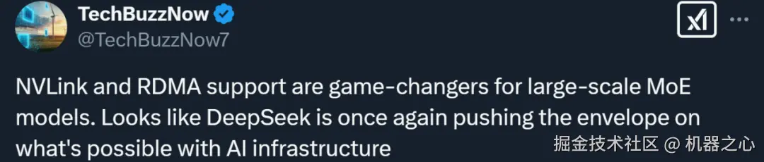 还有人说,「NVLink 和 RDMA 支持对大规模 MoE 模型来说是革命性的突破。看来 DeepSeek 再次在 AI 基础设施的可能性方面推动了技术边界。」