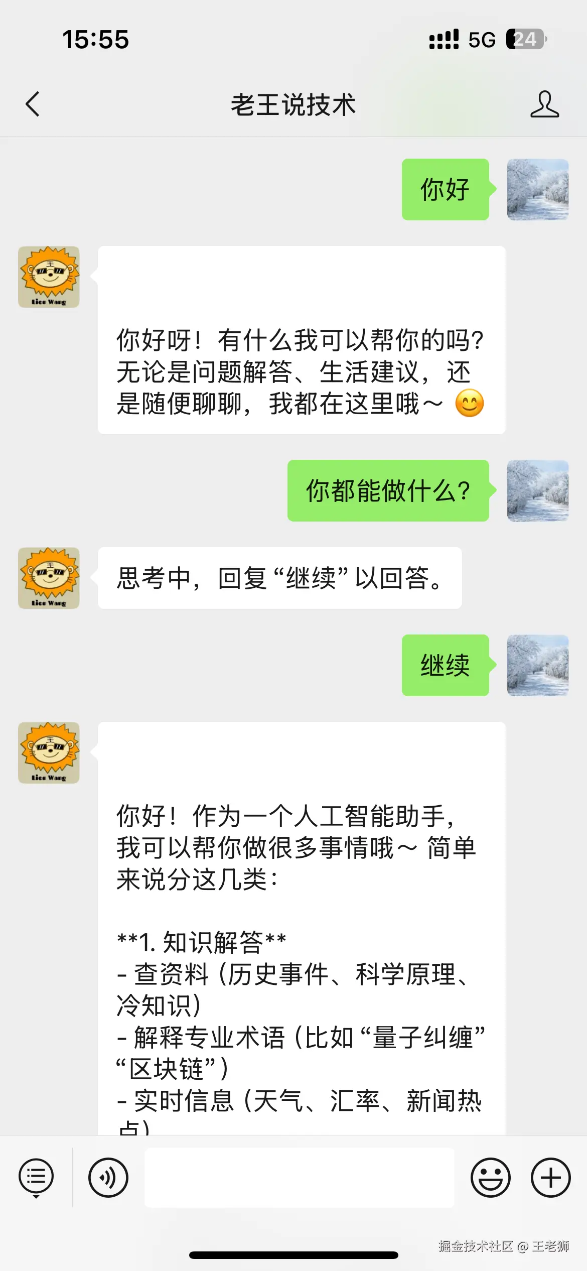 关注本博主公众号"老王说技术",当前已接入deepseek,欢迎试用哈,请轻点蹂躏😄