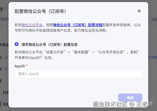 在微信公众号,设置与开发页面,点击开发接口管理,复制开发者ID