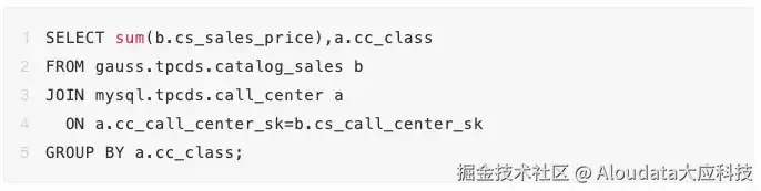 1.下推场景举例:我们以 TPCDS 中的 catalogsales 和 callcenter 表的查询为例,假设存在以下 SQL,两张表分别来自不同的源。
