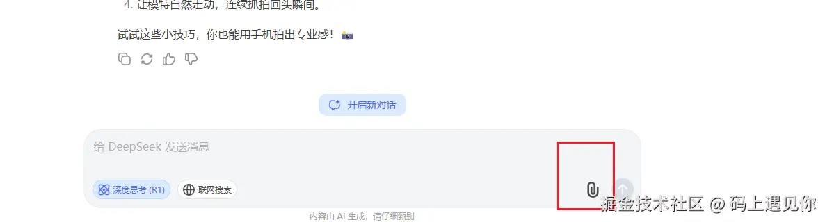 - 点击“回形针”图标上传文件(支持 PDF、Word、TXT 等格式)。