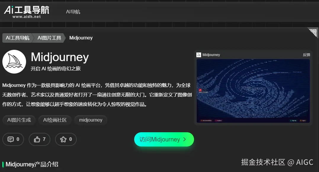 ·便捷直达:无需在茫茫网络中搜索,苹果商店里热门的AI工具,在这里都有直接链接,一键就能开启创作。比如,当你被AI绘画的魅力吸引,想尝试MidJourney时,只需在AI工具导航网中点击链接,就能迅速进入创作界面。