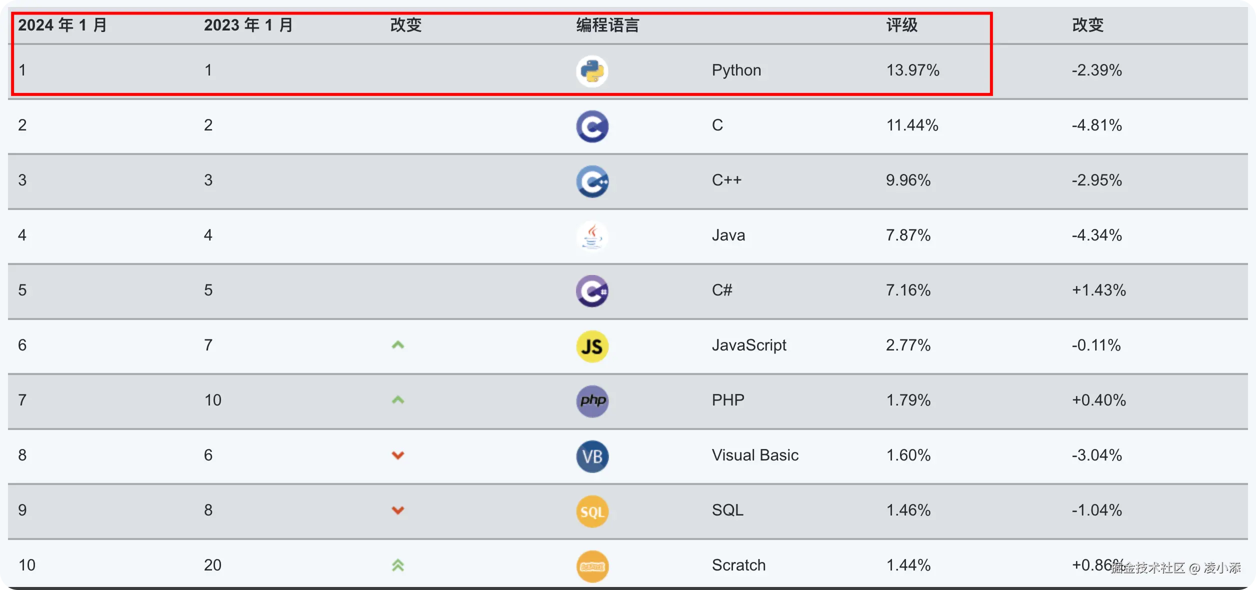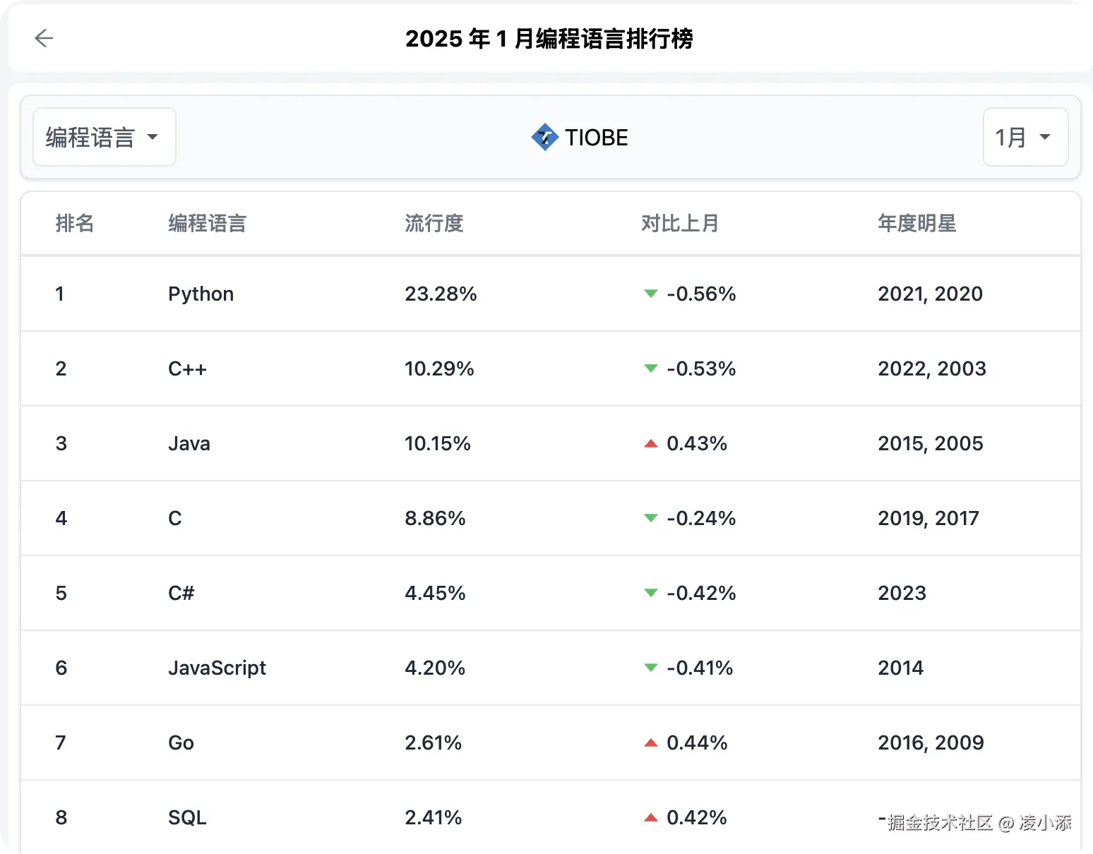 2024年1月的编程语言排行榜,Python的受欢迎程度蝉联第一