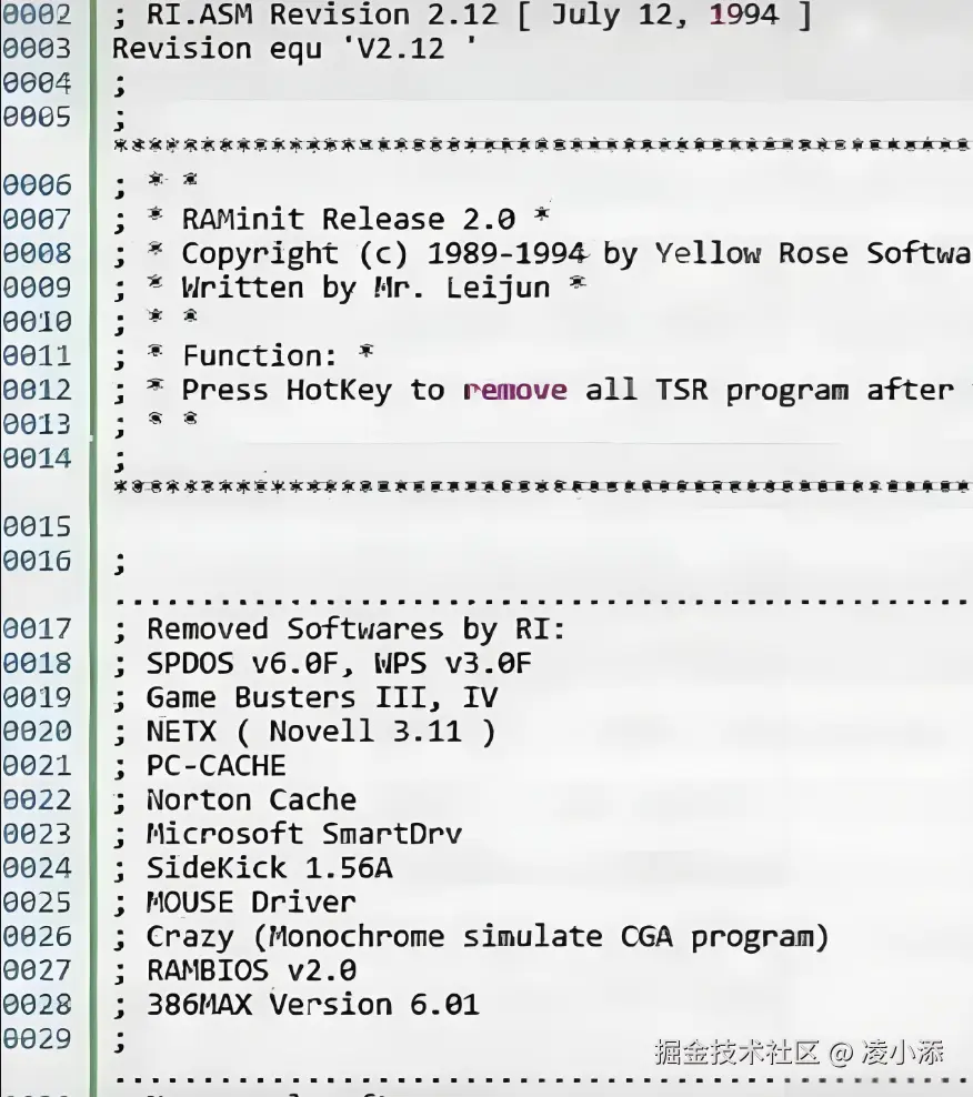雷军在 90 年代写的汇编语言代码