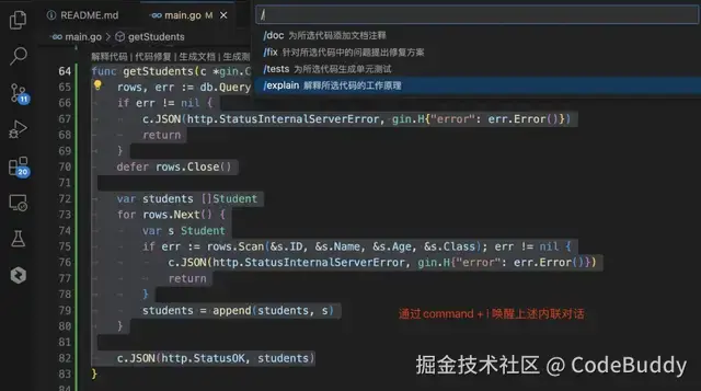 通过内联对话,开发者可以更专注于创意和逻辑,而不是被繁琐的代码和跳出外部问答操作所困扰,代码编写更高效,让编程更加人性化,开发者实现人机合一,实现真正的沉浸式编程体验。