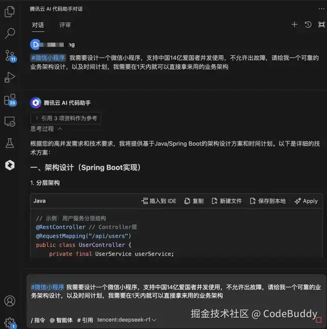我们将 DeepSeek R1 满血版的腾讯云AI代码助手