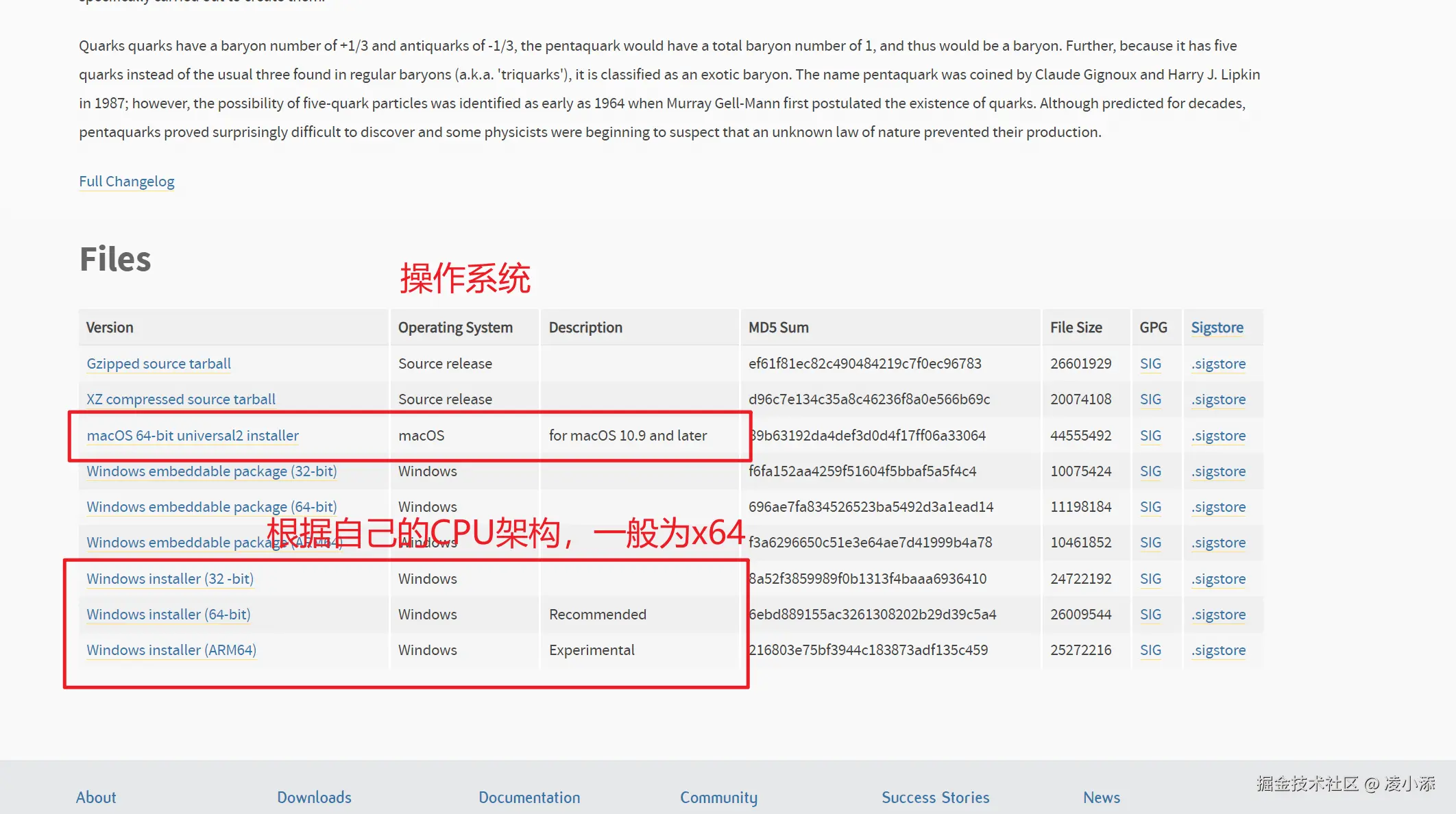 图中就是Python的官网了,我们根据自己电脑的操作系统,找到对应的下载系统,点击右边的版本号即可下载。(浏览器也会自动识别操作系统以及32位or64位架构)