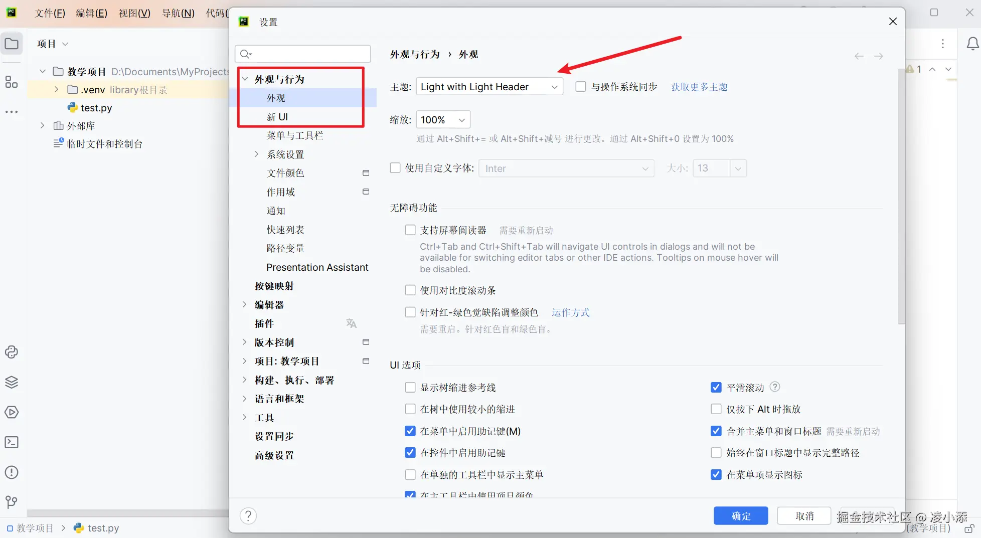 Pycharm自带了一些主题和UI,如日间模式和夜间模式,我们可以根据自己的喜好设置,插件商店也可以下载其他主题。