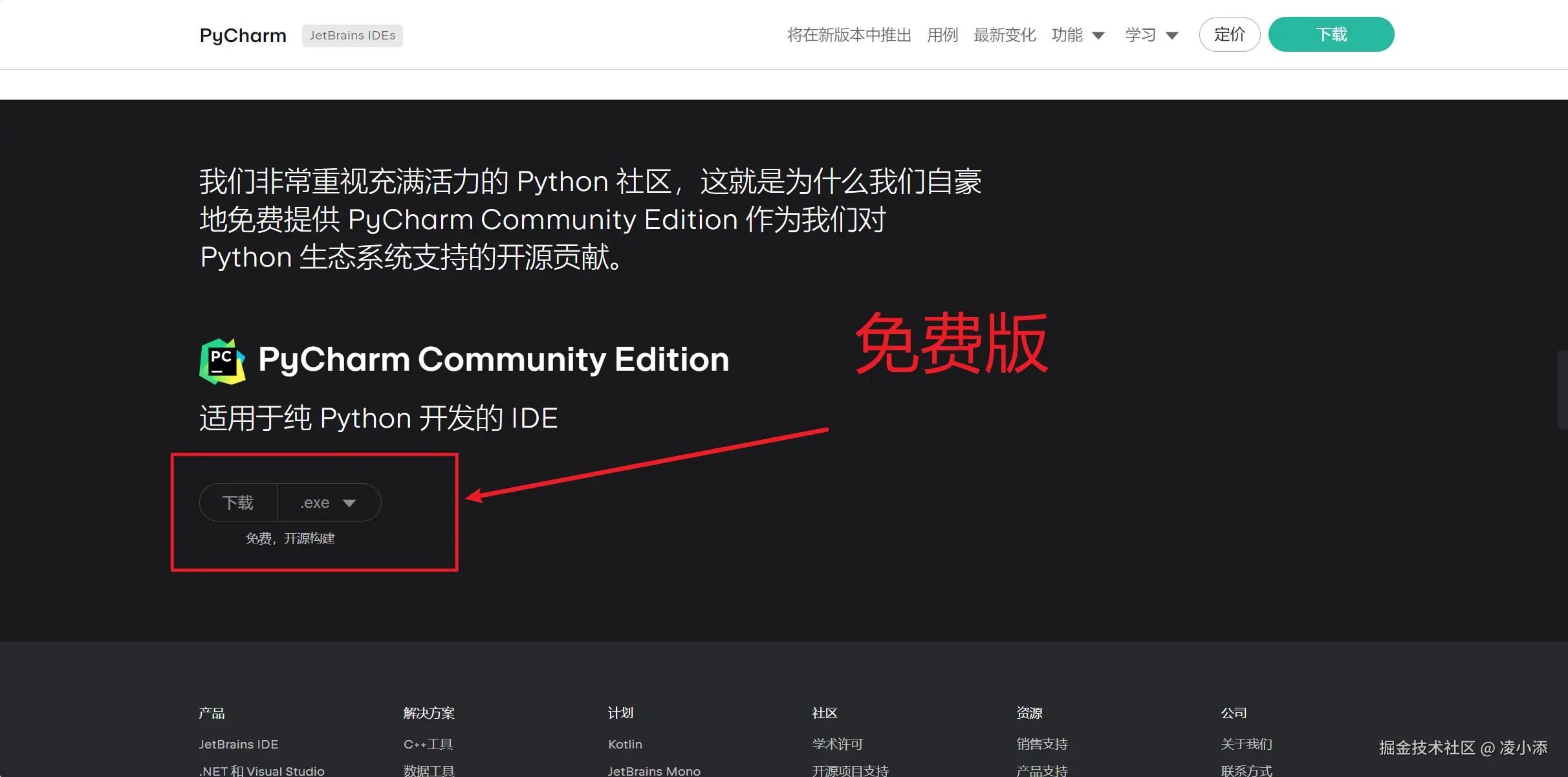 将网页下拉到最下面可以看到社区版,我们直接下载安装即可。