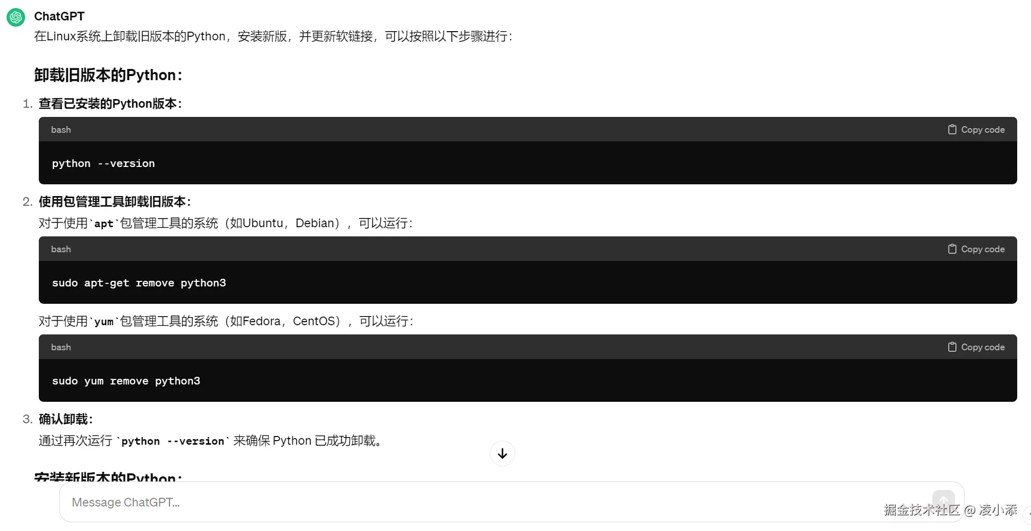 例2:linux系统如何卸载初始版本python,安装新版python,并更新软链接?