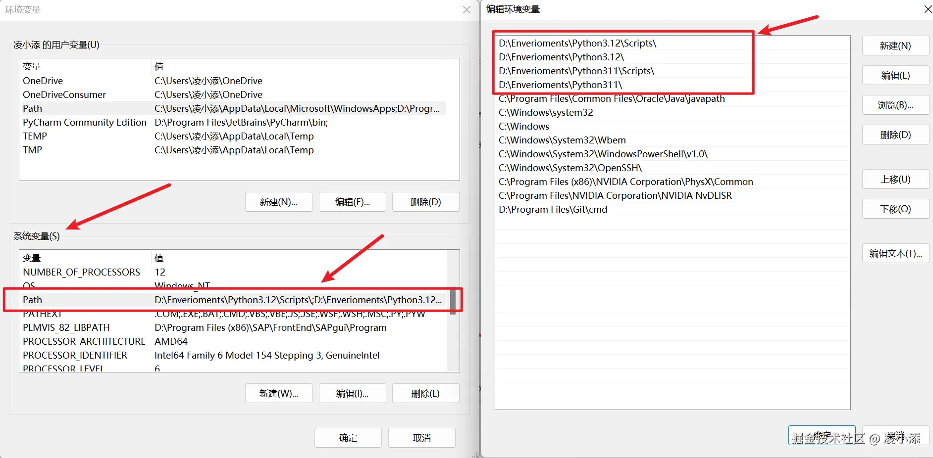 将自己Python的安装目录和 安装目录\Scripts\ 粘贴进去,重启电脑后生效