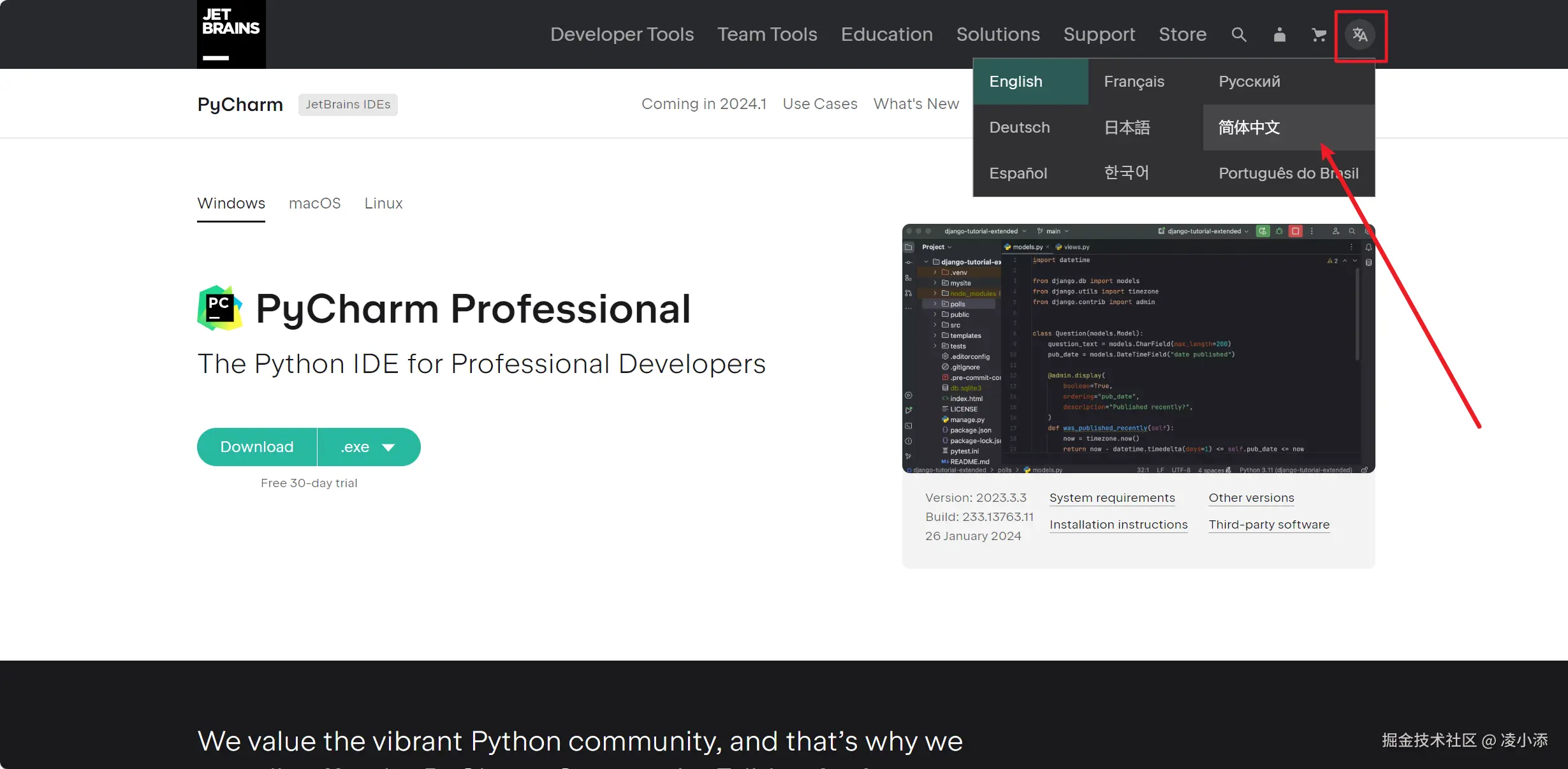 前往PyCharm官网下载Community版本(免费):www.jetbrains.com/pycharm/dow…