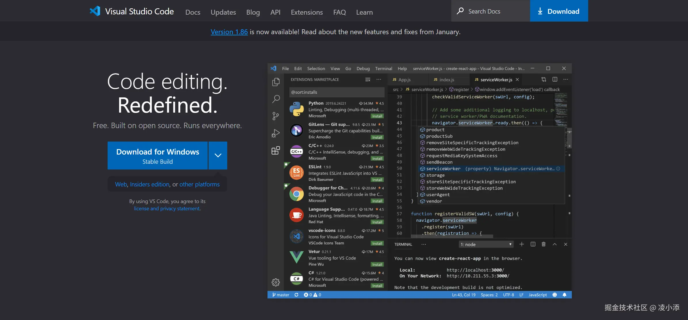 访问VSCode官网下载并安装:code.visualstudio.com/Download