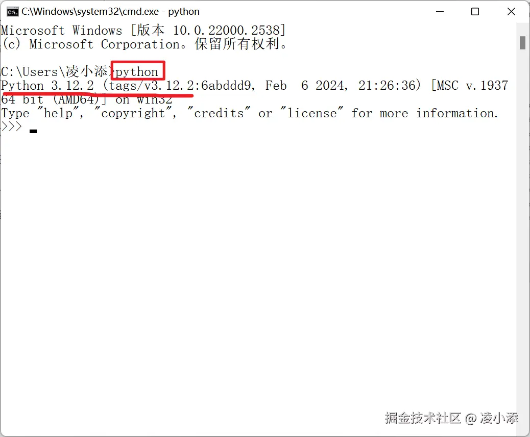 显示类似下面的画面说明python已成功安装并成功配置为控制变量。