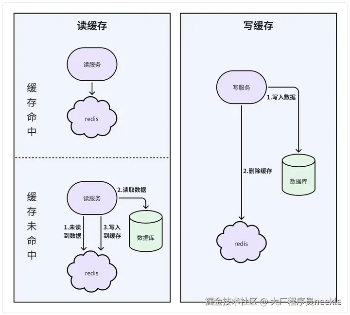 - 如果没命中缓存,则从数据库中读取数据,并更新缓存