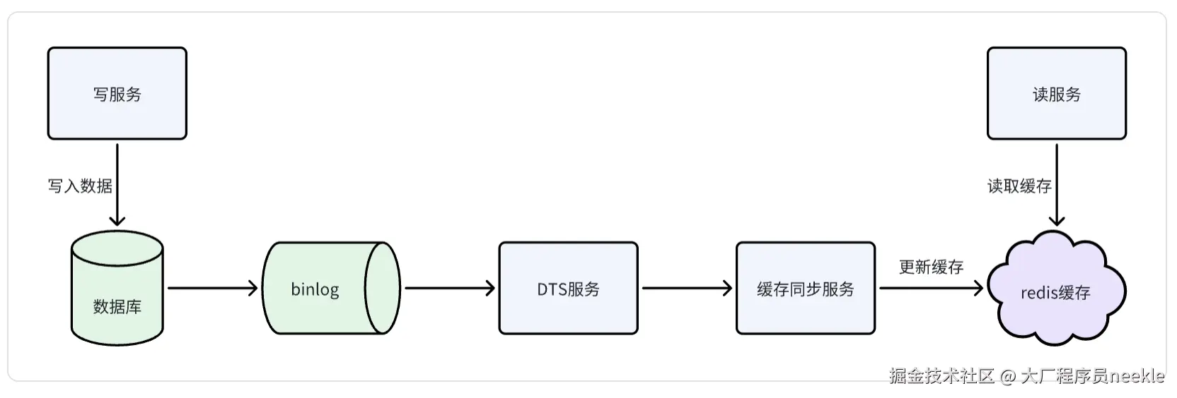 这种方案的优点是将缓存和数据库的更新解耦。避免编码时新增sql忘记更新缓存导致数据不一致。