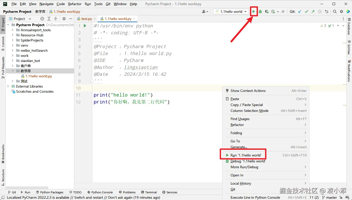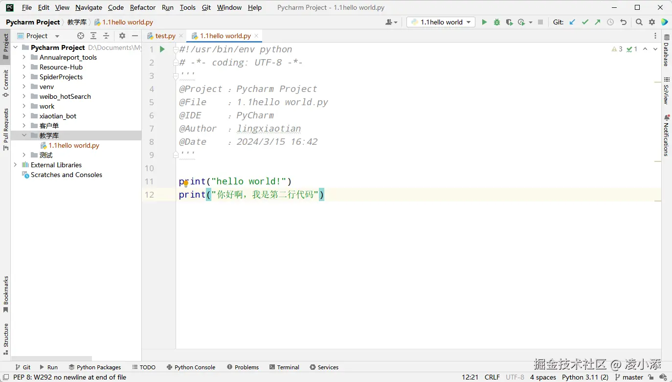 当然有!我们以pycharm为例,我们先新建一个 helloworld.py文件,然后写下这两行代码:
