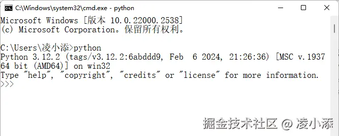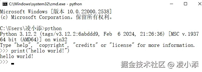 当显示出python版本号和>>>这三个尖括号时就说明可以运行python代码了!