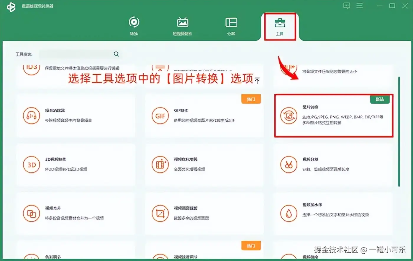 步骤1:双击数据 蛙视频转换器图标并运行,选择工具选项中的【图片转换】选项。