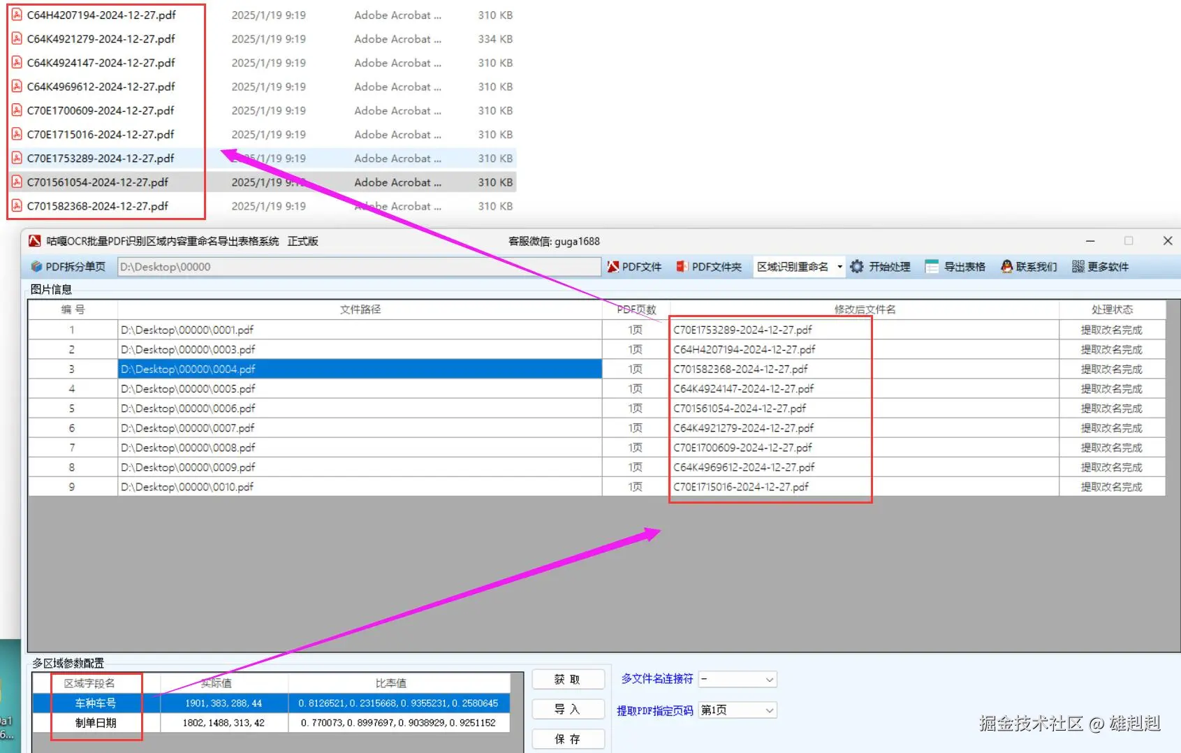 “咕嘎批量OCR识别图片PDF多区域内容重命名导出表格系统”是一款功能强大的工具,支持批量提取图片中的文字内容,并根据识别结果进行重命名。它广泛应用于文档管理、商品管理和个人文件整理等场景。通过简单的操作,可以快速完成批量处理任务,显著提升工作效率。