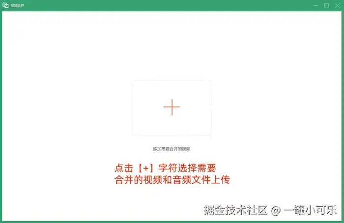 ② 添加文件:点击【+】字符,选择需要合并的视频和音频文件上传。