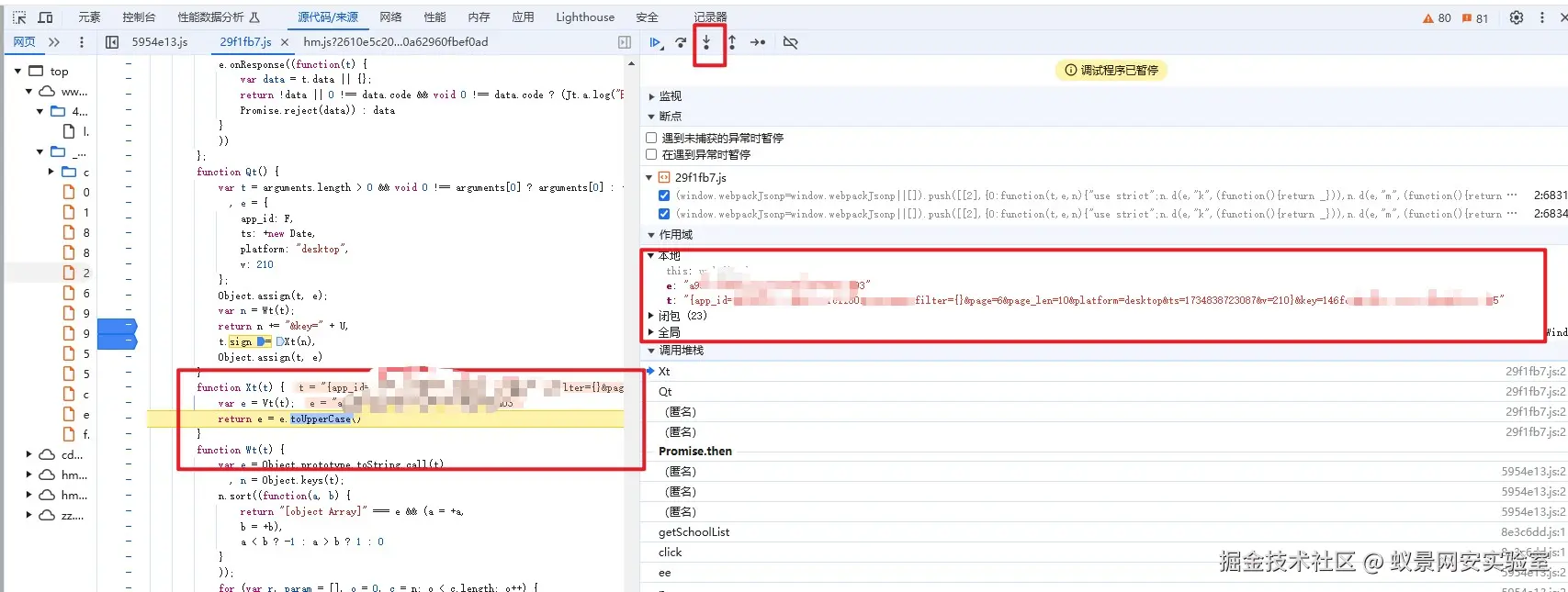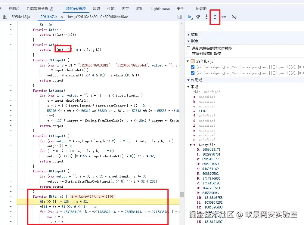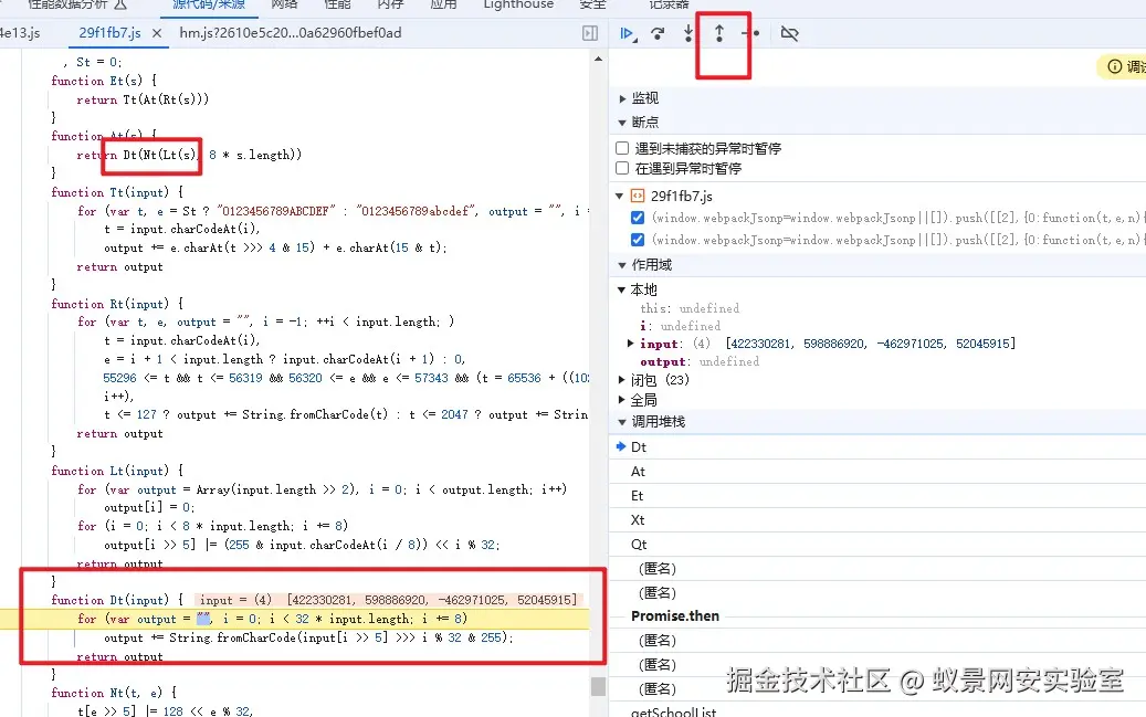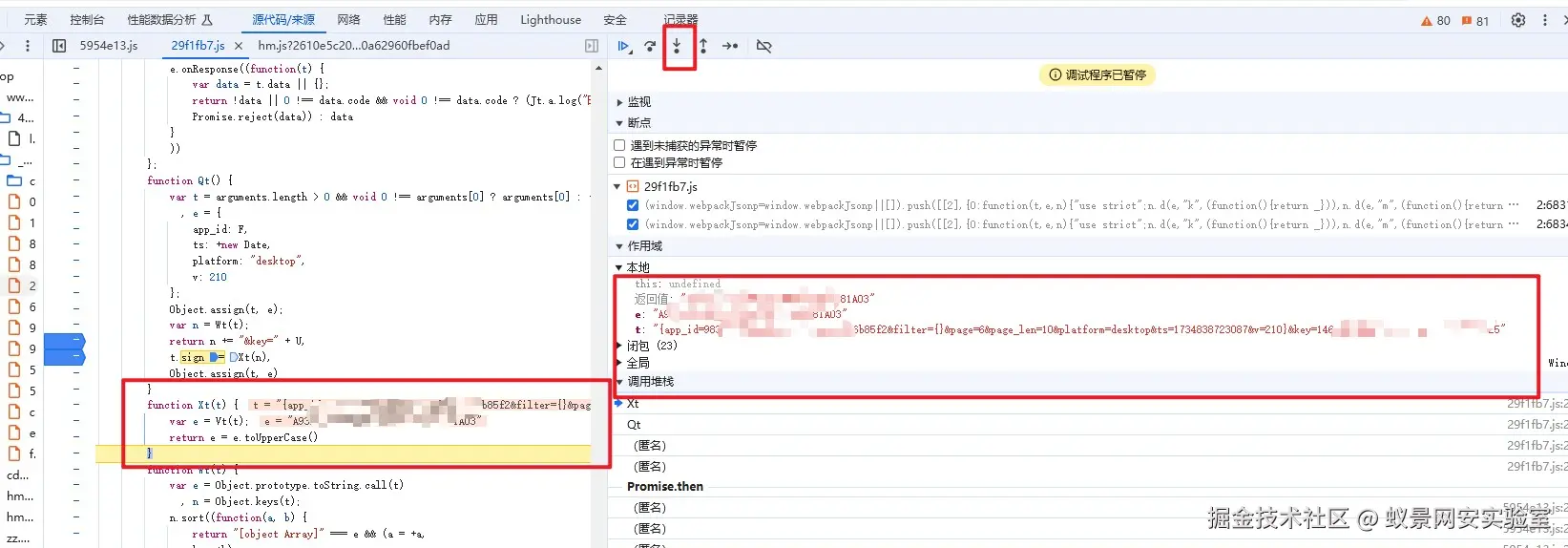 2)XHR断点:执行比较靠后,距离加密函数相对较近,可以根据栈快速定位