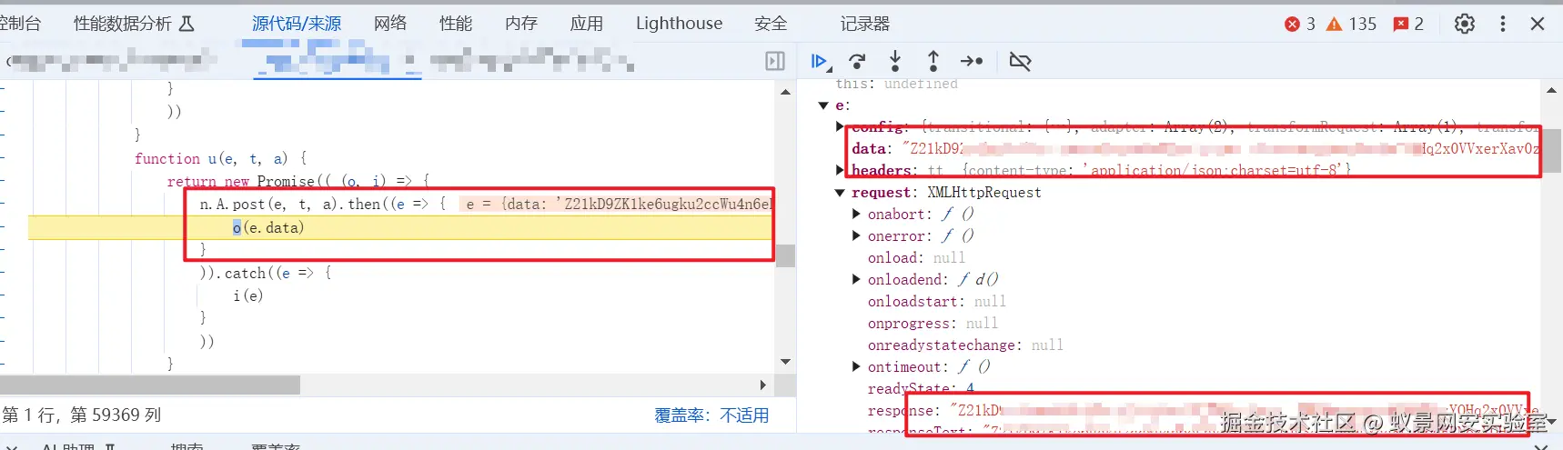 将获取到的加密数据,通过控制台面板传入o,并调用da.A.decodeData()成功获取原始数据,达到测试的效果。