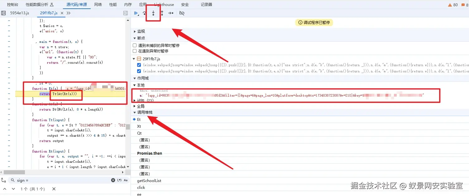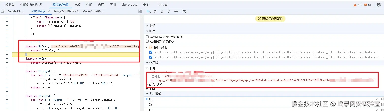 继续执行完Et后可以看出返回了遗传字符,应该就是我们的sign的值
