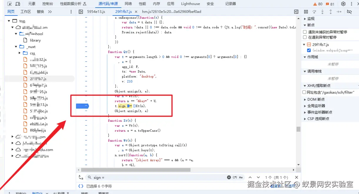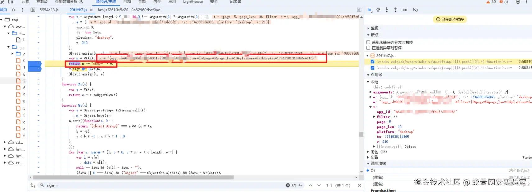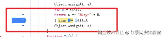 通过数据包分析判断为sign参数为参数校验,因此在调试解密直接搜索关键词sign=,成功在代码中查询到,