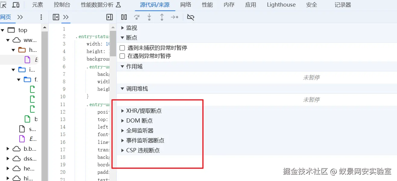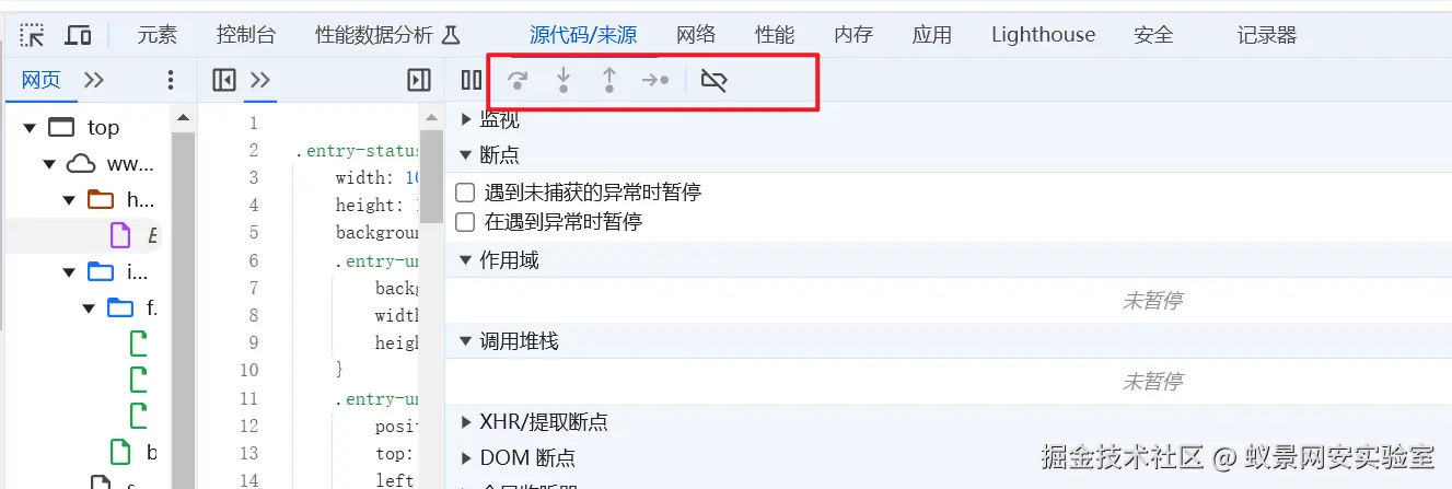 源代码(Sources):查看Web应用加载的所有文件;编辑CSS和JavaScript文件内容,包括如下:(page : 所有资源文件;filesystem: 关联本地文件;overrides: 可以做文件替换,比如替换JS;代码段:可以编写脚本,影响页面,代码记录);