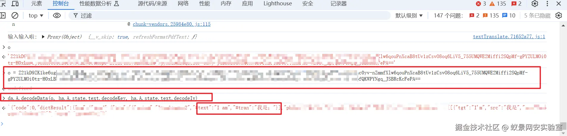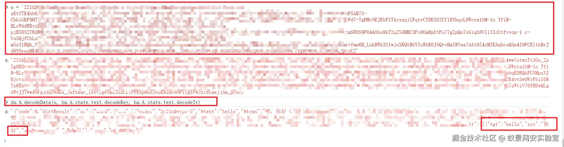 那么通过控制台面板,出入o为加密值,复制da.A.decodeData()进行执行,成功获得解密的数据。