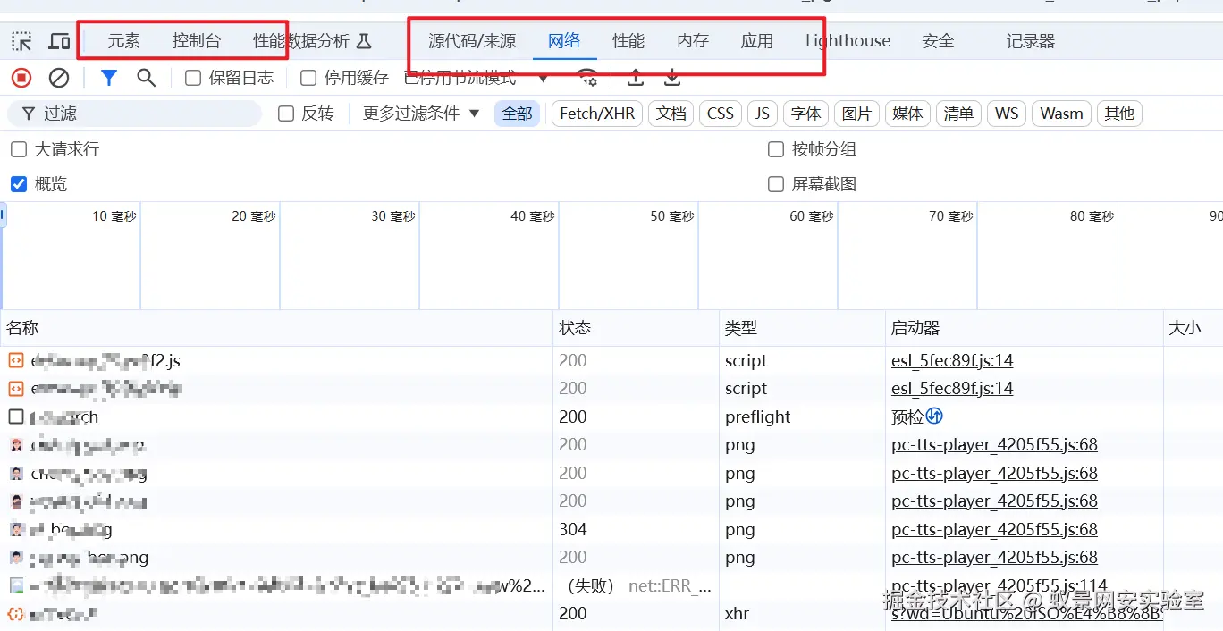 网络(Network):展示页面中所有的请求内容列表,能查看每项的请求头、请求行、请求体、时间线以及网络请求的瀑布图等信息;