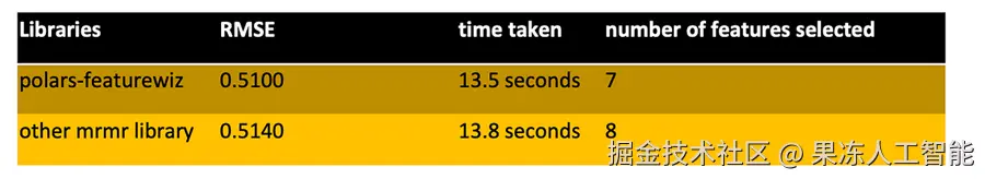 我们将Featurewiz-Polars与mRMR特征选择库进行了测试,使用其Polars实现进行公平比较。